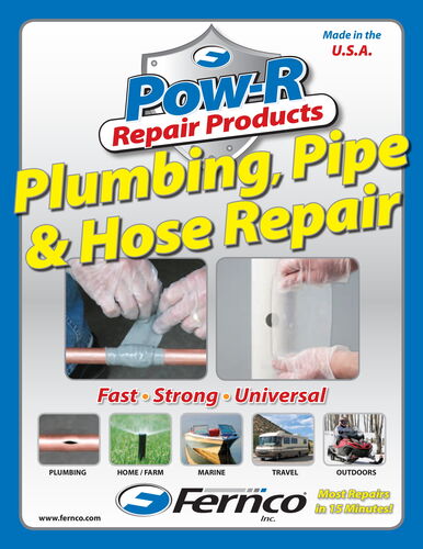 Pow-R Wrap is a strong, permanent and economical repair that can mend virtually any kind of pipe and hose. Working on wet, dry, clean, dirty and under-water conditions, it's an ideal alternative to traditional methods such as cementing, soldering, welding and replacement.