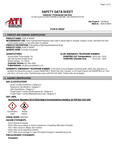 - FPW248CS Pow-R Wrap - 2" x 48" to repair up to 1" diameter pipe